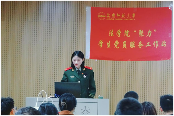 法学专业2020(2)班的丁柔着重和大家分享了部队纪律、体能锻炼、文娱活动等,她表示:“军人是全社会最尊崇的职业,我为自己曾经是一名军人感到自豪。我们退伍军人退伍不褪色,继续努力为国家为社会作出贡献!”