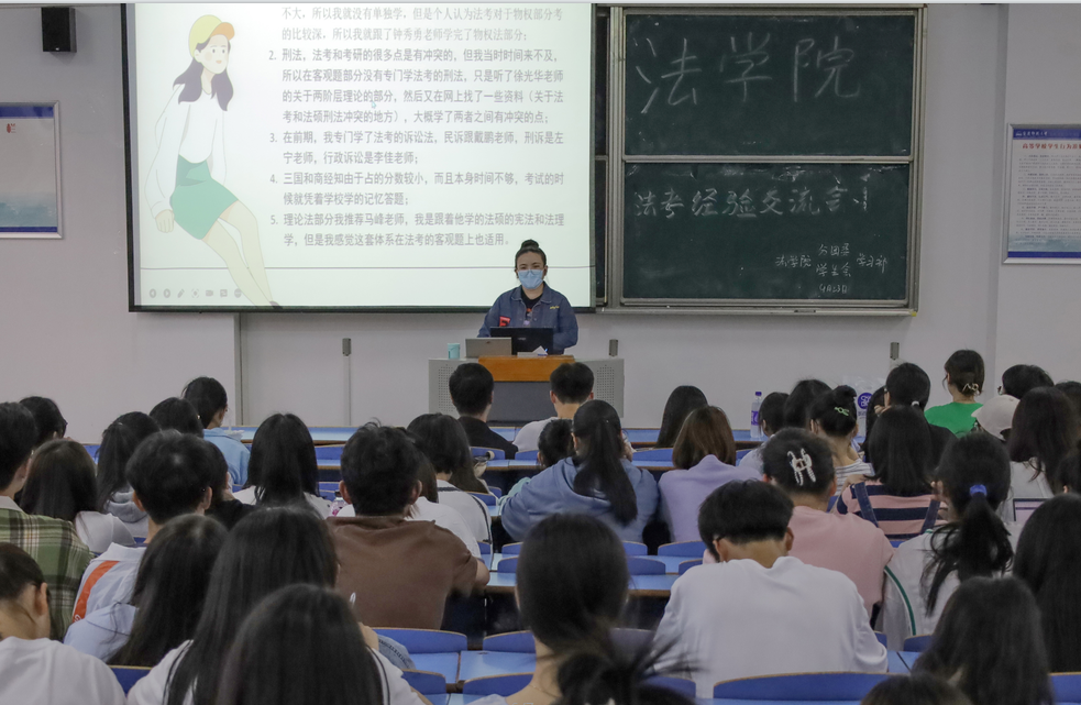 “法律职业资格考试经验交流会是我们院的一个传统会议,每年都会邀请成功上岸的学长学姐们为大家分享考试经验与心得。”活动负责人法学类专业2021(3)班的刘多文介绍,开展此次经验交流会,希望同学们能系统全面了解法律职业资格考试,搭建一个良好的沟通交流平台,从而达到取长补短、共同进步的效果。(撰稿:员工记者 唐洁 贾睿雯摄影:员工记者 王俱进 王若男 审核:从光梅)