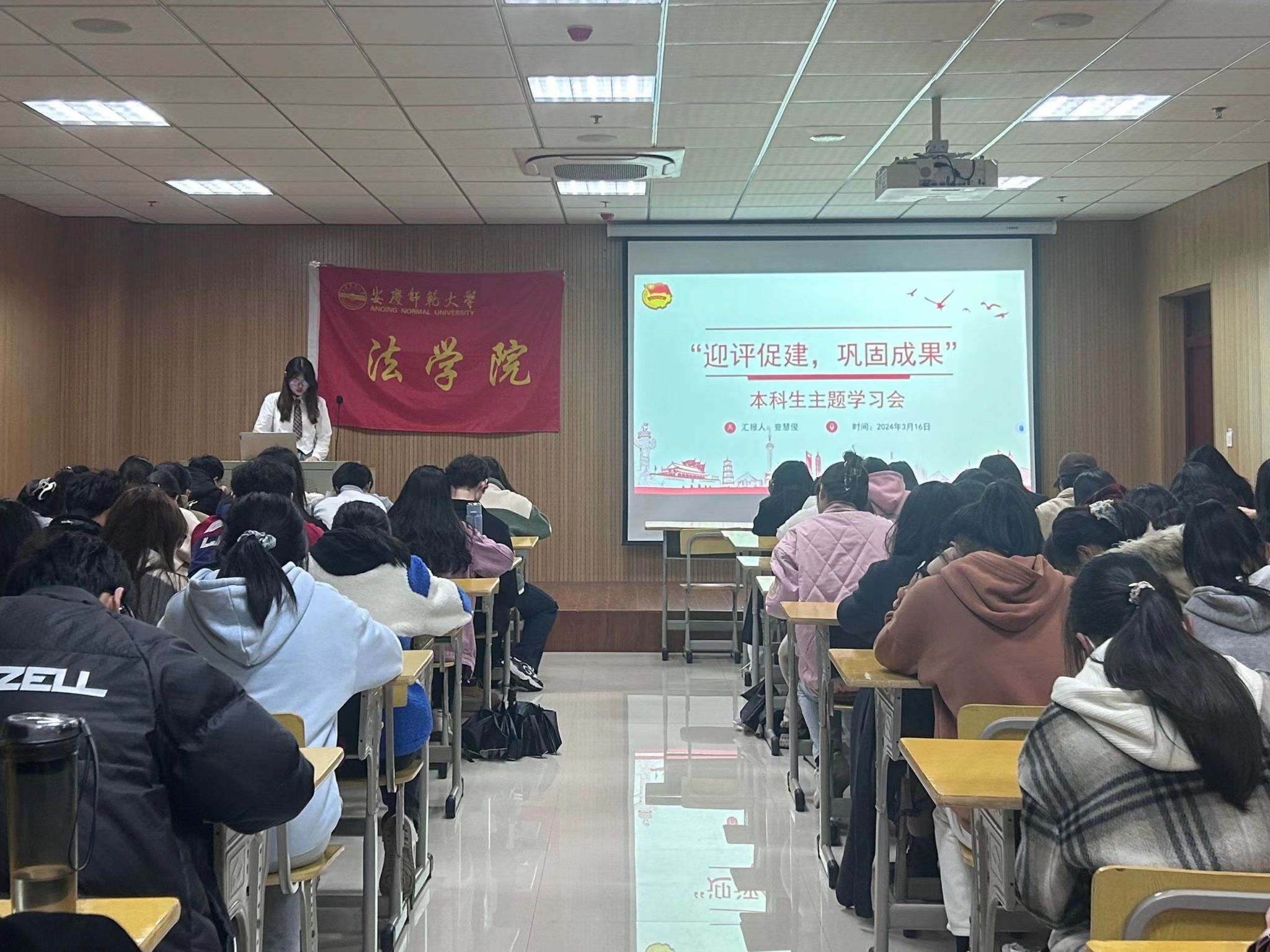为扎实做好审核评估各项准备工作,近日,bevictor韦德国际在O楼401教室举办“迎评促建”本科生主题学习会。bevictor韦德国际社会工作专业2022级查慧俊同学担任主讲人,bevictor韦德国际2022级和2023级近150名员工代表参加了本次主题学习会。