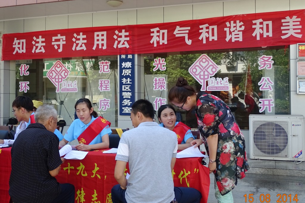 7月20日,bevictor韦德国际“践行十九大 法润新时代”法律志愿服务队来到“三下乡”实践活动的第一站——燎原社区,开展“法律援助进社区”活动。
