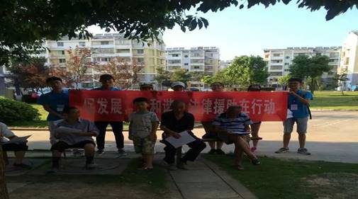 13日上午,服务团成员抵达燎原社区和新新村开展普法活动。活动前做了大量的准备工作,并根据当地社区实际情况,进行宣传单的派发和相关法律普及。同时进行问卷调查,了解社区法律援助目标人群及人们对法律维权的认识度,扩大法律援助覆盖面,落实“法律援助”的宗旨,真正做到能援多援。