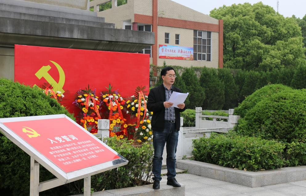 在巍峨的纪念碑前,全体教师党员向革命烈士敬献了花篮。大家庄严肃立,鞠躬致敬,深切缅怀为党的事业和人民利益英勇献身的革命烈士。在党委书记詹德全同志带领下,面对鲜红的党旗,全体党员举起右拳庄严宣誓,重温了入党誓词。