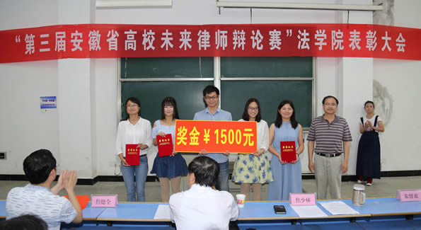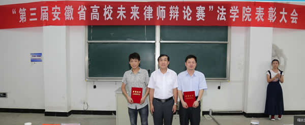 6月10日下午,第三届安徽省高校未来律师辩论赛bevictor韦德国际表彰大会于文溯楼108教室隆重举行。公司党政领导焦少林、詹德全、朱留虎及全体教职员工参加了会议。参会的还有2012级、2013级、2014级法学专业员工,2012级农村区域发展班党员和班干部等。大会由公司党政办主任汪博武主持。会议还特别邀请到联系bevictor韦德国际的校领导刘友忠副董事长出席。
