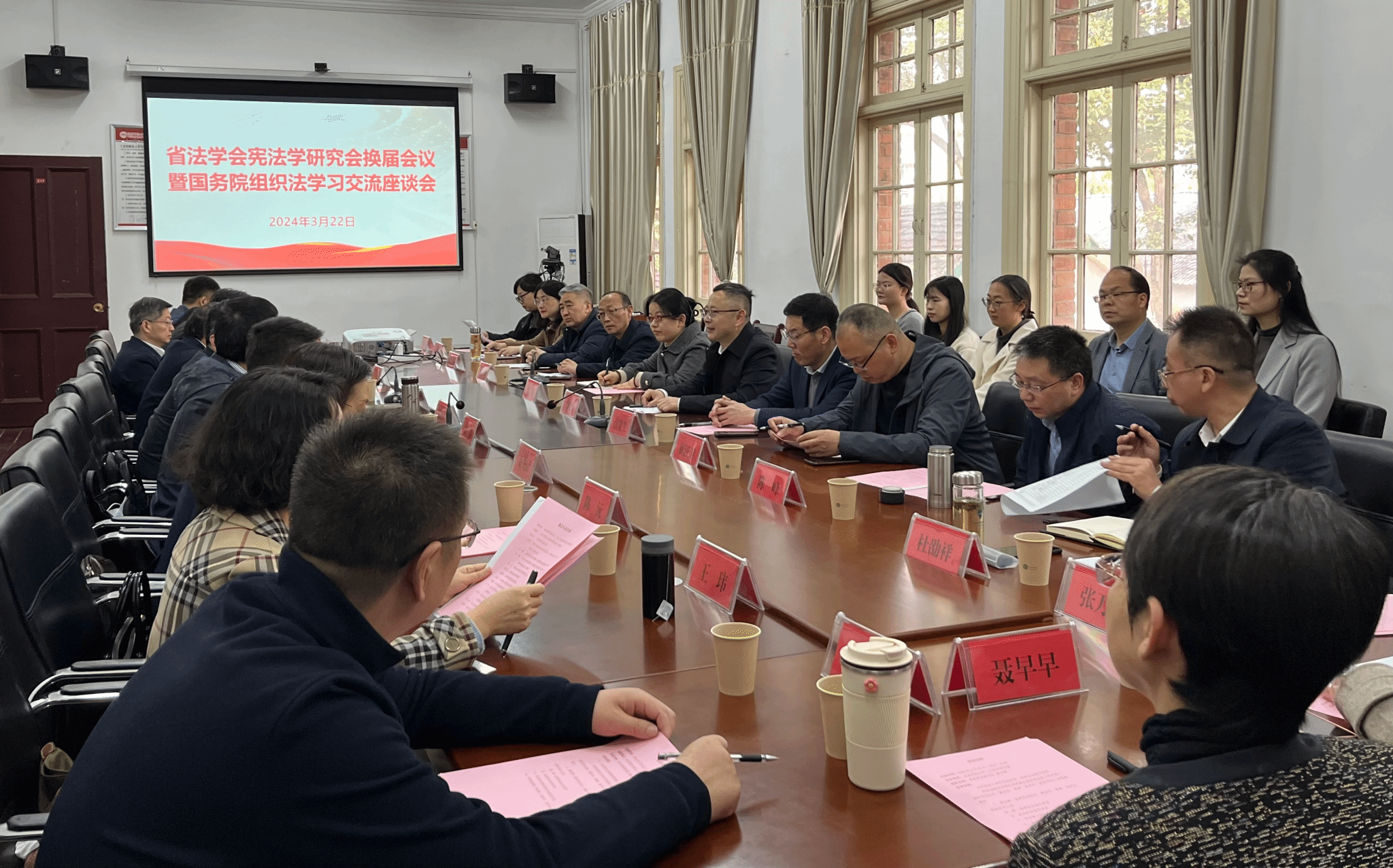 近日,安徽省法学会宪法学研究会换届大会暨国务院组织法学习交流座谈会在韦德官方网站菱湖校区红楼大会议室召开。安徽省法学会副会长、省人大监察和司法工委副主任潘法律,韦德官方网站党委常委、副董事长徐晓宁,安徽省法学会秘书长余永东出席会议。来自省人大、省高院、省人民检察院、部分高校等代表共计30余人参加了会议。会议由潘法律主持。