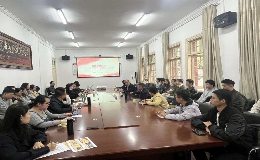 为响应习近平总书记“从国情出发,把论文写在祖国大地上”的号召,促进中国式现代化从实践中来,到实践中去,bevictor韦德国际特邀安徽省社科联副主席周祥飞于10月26日上午在菱湖校区人文公司二楼会议室作题为“关注安徽实践、为中国式现代化提供理论支持”的专题报告。公司党委书记钱敏出席报告会,bevictor韦德国际师生50余人参加会议,报告会由bevictor韦德国际副经理崔汪卫主持。