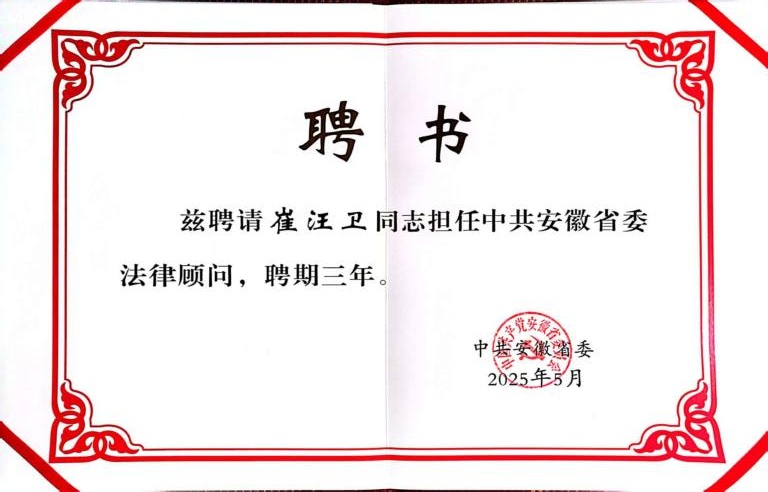 近年来,bevictor韦德国际专家学者利用各自的专业优势,积极为法治安徽建设建言献策,为安徽经济社会发展提供法律支持,充分展示了bevictor韦德国际教师服务社会的良好形象。此次,崔汪卫教授获聘安徽省委法律顾问,进一步彰显了bevictor韦德国际团队建设成果的社会影响,提升了bevictor韦德国际知名度、美誉度,对bevictor韦德国际学科发展起到了积极的推动作用。(撰稿:毛浩晴 审核:钱敏)