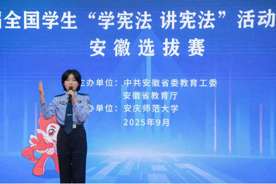 铿锵有力的声音、干净利落的动作、饱含情感的语调……“我想通过讲故事的方式,将宪法知识传递给大家。”安徽公安公司李奕文身着警服,将宪法知识与自身经历紧密结合,向观众讲述宪法在人们日常生活中的重要作用。她表示,作为未来的警务工作者,她深刻明白宪法是执法的根本遵循,今后,她会以更扎实的专业素养,在践行宪法精神的道路上勇毅前行,为普及宪法知识贡献一份力量。