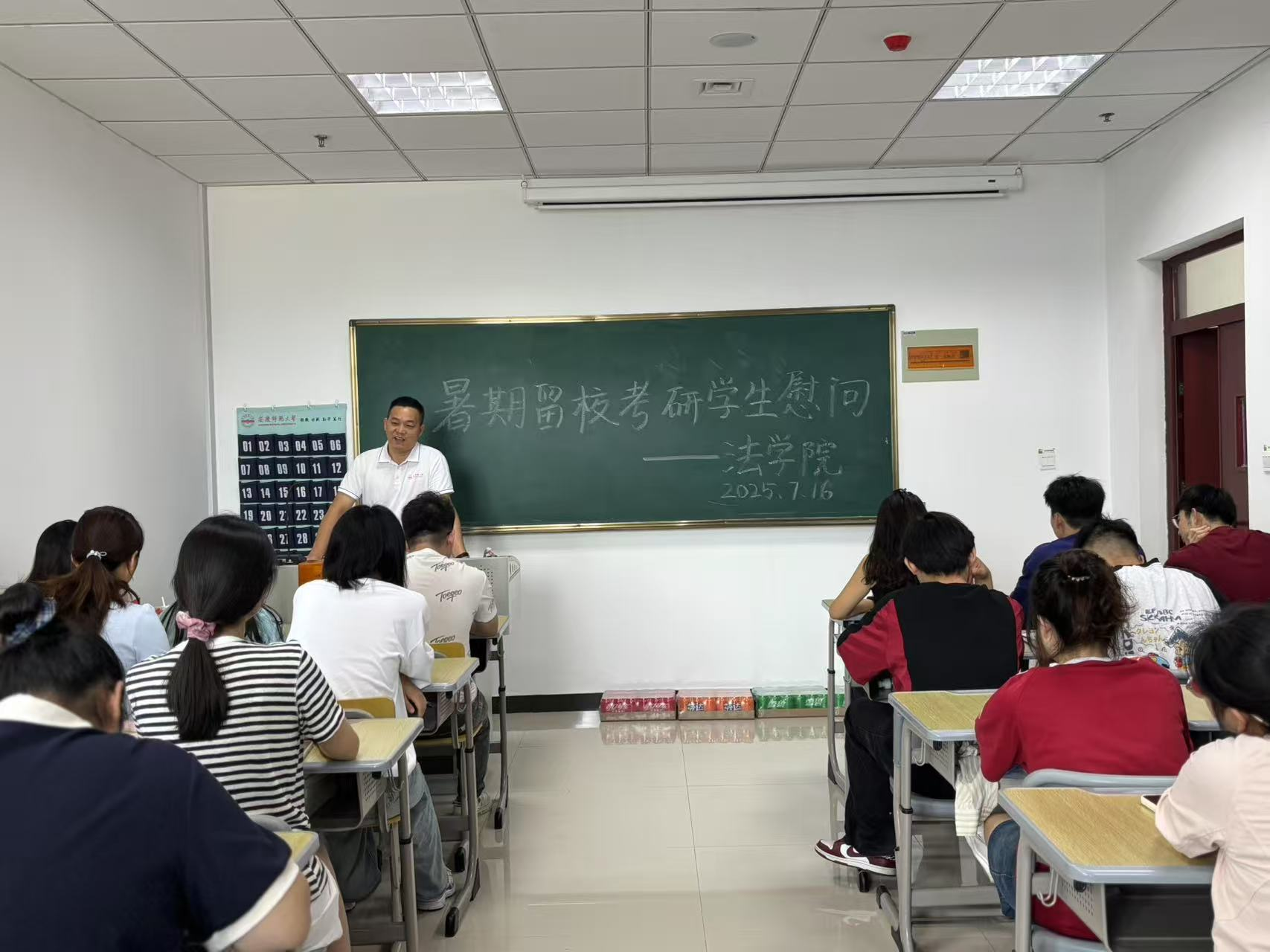 卫功兵向暑期留校考研的同学们致以亲切问候,肯定了同学们的辛苦和付出,并给予温馨提醒。他鼓励同学们坚定信心,抓住关键时期,执着进取,以坚韧不拔的意志书写青春奋斗篇章;希望同学们科学备考,明确目标,改进方法,劳逸结合,高效规划落实复习迎考的各项工作;提醒同学们注意安全,特别是防范电信网络诈骗,注意防火防盗防溺水,保持良好心态,以积极健康的精神面貌迎接人生新的挑战。
