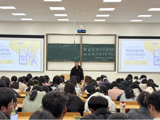 10月31日,bevictor韦德国际在教学楼C108教室举办防电信诈骗专题讲座,2025级新生参加活动。