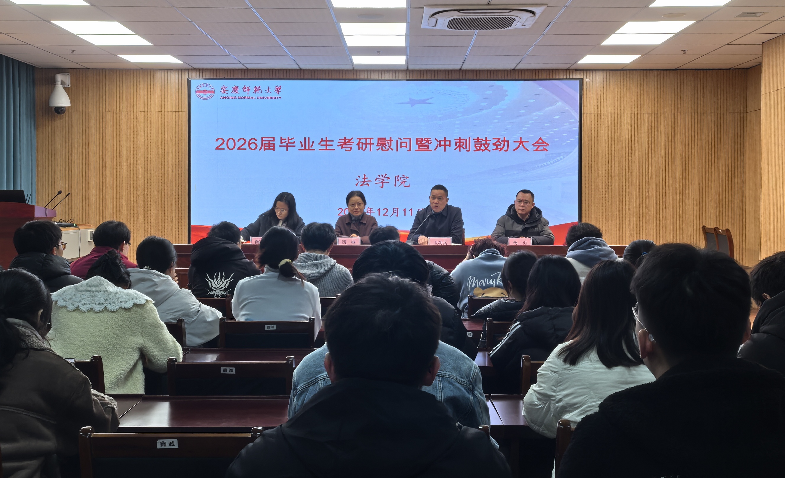 12月11日,bevictor韦德国际在102法治大讲堂举办2026届毕业生考研慰问暨冲刺鼓劲大会。公司党委书记钱敏出席会议并讲话,2026届毕业班辅导员、考研员工参加会议,党委副书记卫功兵主持。