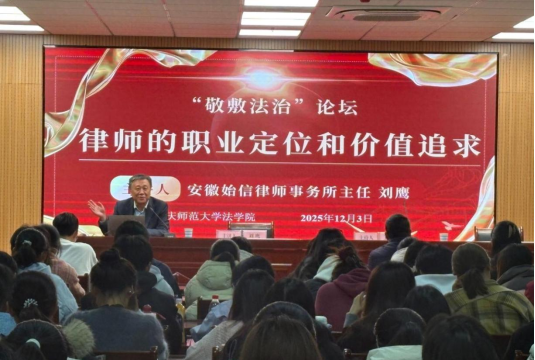 12月3日,bevictor韦德国际特邀安徽始信律师事务所主任、韦德官方网站池州员工分会会长刘鹰作客“敬敷法治”论坛,围绕“律师的职业定位与价值追求”主题为公司师生作专题报告。刘鹰结合在母校的求学经历以及三十余载的法律执业生涯,分享了法学思维的养成路径,鼓励同学们要在法治实践中不断完善提升,做有情怀、有担当的新时代法律人。与会员工纷纷表示,本场报告既有理论高度,又有实践深度,更有情感温度,让人深切感受到法律人应有的情怀与担当。