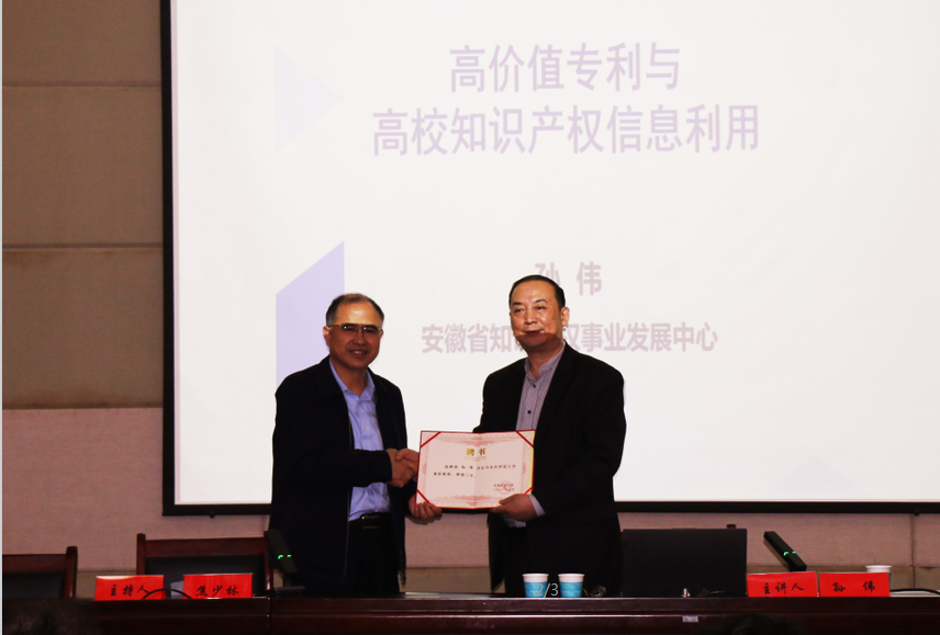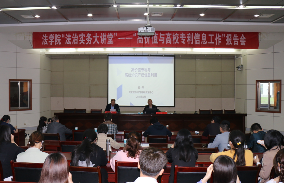 5月19日下午,安徽省知识产权事业发展中心二级调研员孙伟受邀法治实务大讲堂作了题为“高价值专利与高校知识产权信息利用”的学术报告。本次报告会是在校五月活动月之际,由校科研处、bevictor韦德国际共同举办的。公司师生及安庆市知识产权局部分领导近200人参加了报告会。