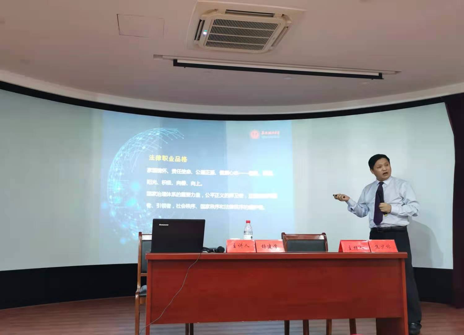 2021年6月25日下午,西南政法大学仲裁公司执行经理杨建学教授应邀莅临法治实务大讲堂,为bevictor韦德国际师生举行了主题为“法律职业素养的养成”为主题的讲座,bevictor韦德国际本科生、研究生和教师共计150人参加了讲座。讲座由经理焦少林主持。