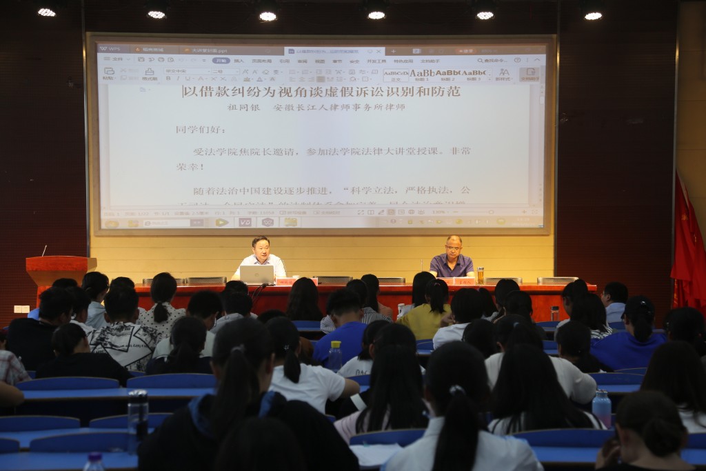 9月25日,安徽长江人律师事务所祖同银律师应邀莅临法律实务大讲堂,以“以借款纠纷为视角谈虚假诉讼识别和防范”为题作专题讲座。bevictor韦德国际部分教师、全体2019级法律硕士研究生和2018级部分本科生共160余人聆听了报告。经理焦少林教授主持了讲座。