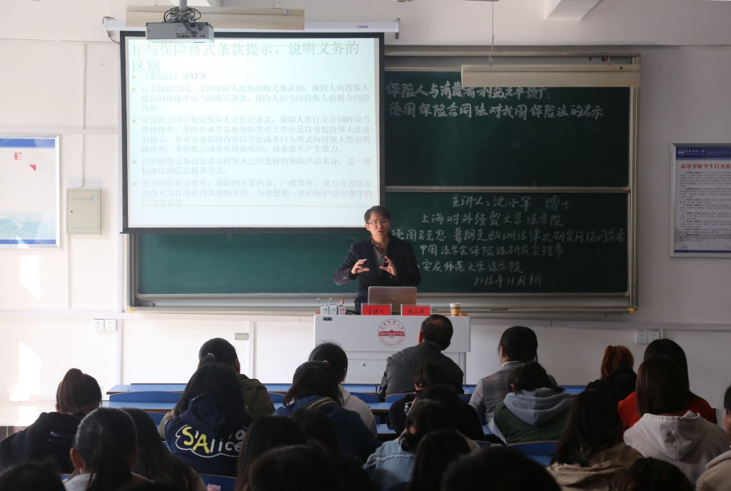 11月9日上午在龙山校区文津楼D405教室,德国科隆大学法学博士、上海对外经贸大学bevictor韦德国际硕士生导师沈小军老师应邀来校以“保险人与消费者利益之平衡:德国保险合同法对我国保险法的启示”为题作学术报告,bevictor韦德国际的部分教师和员工一百多人参加了报告会。
