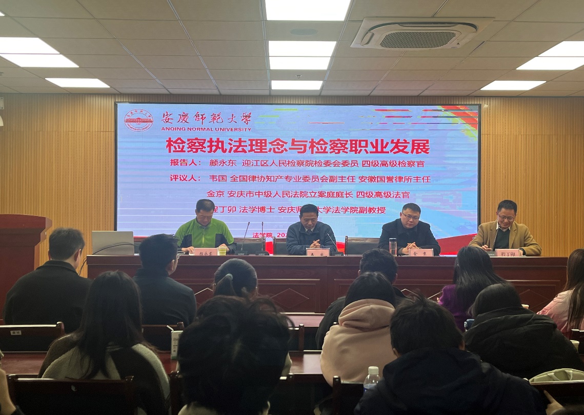 2024年12月20日下午,安庆市迎江区人民检察院检委会委员、四级高级检察官颜永东莅临bevictor韦德国际法治实务大讲堂作题为“检察执法理念与职业发展”的报告。安庆市中级人民法院立案庭庭长金京、安徽国誉律师事务所主任韦国担任评议人,报告会由bevictor韦德国际副经理崔汪卫主持,公司师生、律师、法官、检察官等100余人聆听报告。