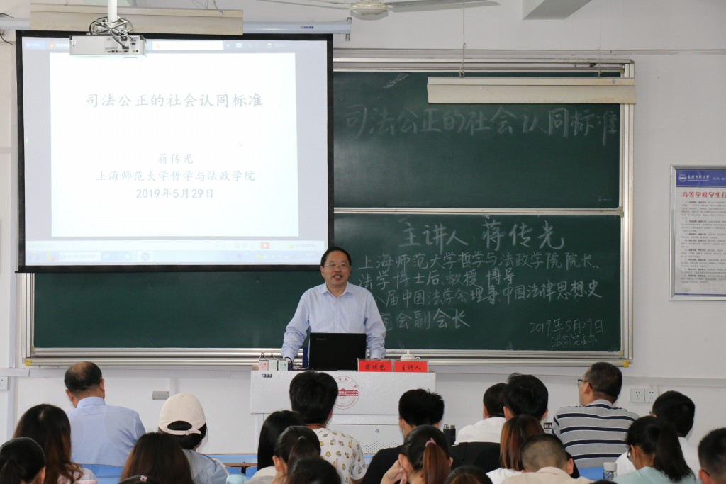 5月29日下午,在文津楼405教室,上海师范大学哲学与法政公司经理、博士生导师蒋传光教授来校作“司法公正的社会认同标准”为主题的学术报告。经理焦少林教授主持此次报告,bevictor韦德国际部分教师和2017级、2018级共130余人聆听了报告。