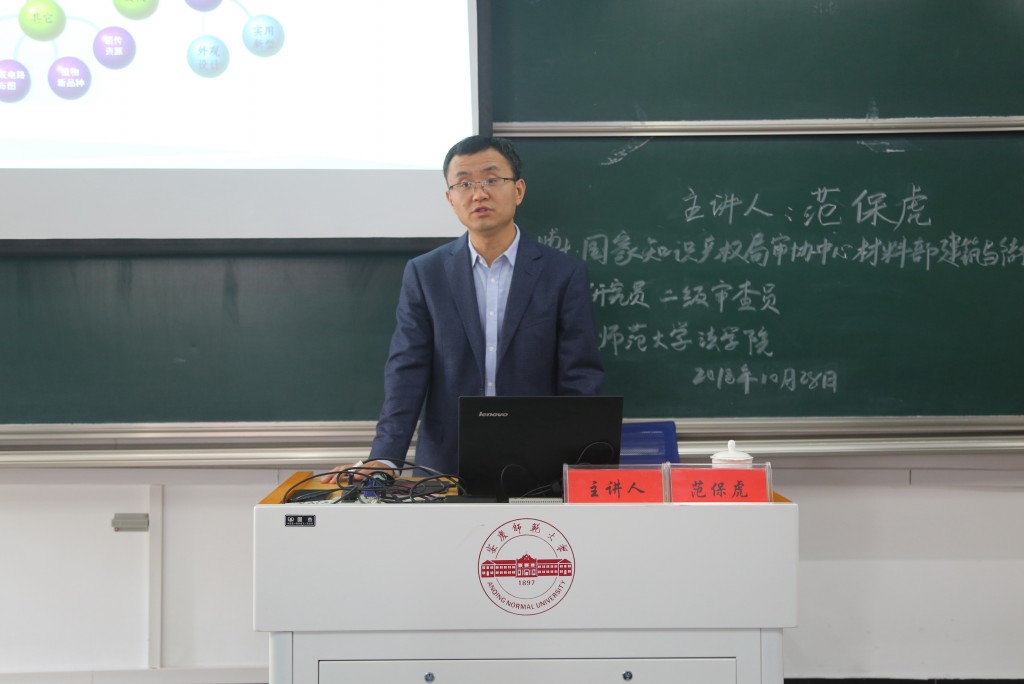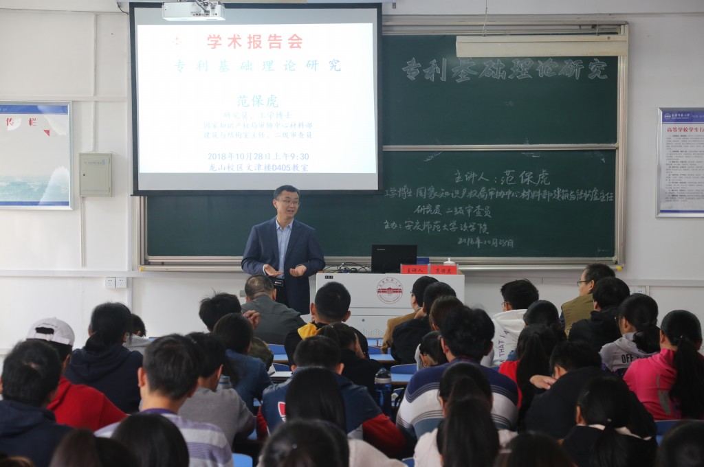 10月28日上午在龙山校区文津楼D405教室,国家知识产权局范保虎研究员应邀来校以“专利基础理论研究”为题作学术报告。bevictor韦德国际副经理朱留虎主持报告会。部分教师和2017级、2018级知识产权专业全体同学和法学专业部分员工共计120余人聆听了报告。
