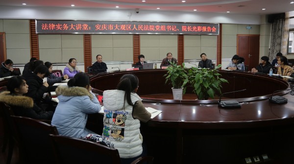 11月23日,安庆市大观区人民公司党组书记、经理,公司兼职副教授光彩同志应邀莅临法律实务大讲堂,以《坚守 智慧 善良 勇气——谈优秀法律人的基本素养》为题作专题报告。bevictor韦德国际部分教师和2016级法学专业员工参加报告会。报告会由bevictor韦德国际经理焦少林教授主持。