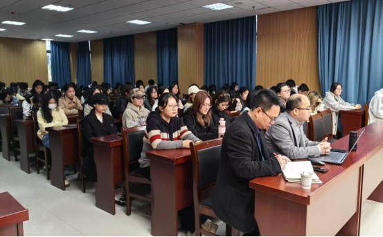 王波指出,当前学术领域正经历着前所未有的变革,在这一背景下,构建具有中国特色、时代特征、学科特点的学术话语体系,对于提升我国学术研究的国际影响力和话语权具有重要意义。他强调,在构建学术话语体系的过程中,应多加关注现实问题,扎根社会实践,聚焦中国式现代化建设,抓真问题、做真学问、讲真道理。要不断发扬学术民主,持续推动学术创新,不断提升我国学术研究的水平和影响力。宣讲中,王波以其深厚的学术功底和独到见解,为大家揭示了第三次学术转型背景下学术话语体系构建的重要性与挑战,同时也向在场师生分享了自己对于做学术研究方面的思考。他表示,学术研究要结合社会热点和学术热点,通过多方阅读形成自己的知识体系,同时学术研究不能过于宏观,要找到合适的切入点进行细致研究,充分提高学术研究的精度和质量。
