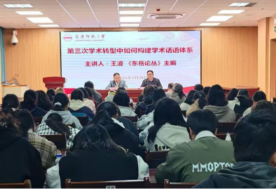 3月28日上午,《东岳论丛》主编王波教授受邀来到bevictor韦德国际,以“第三次学术转型中如何构建学术话语体系”为题为师生们带来了一场精彩纷呈的讲座。副经理邱少晖主持讲座。
