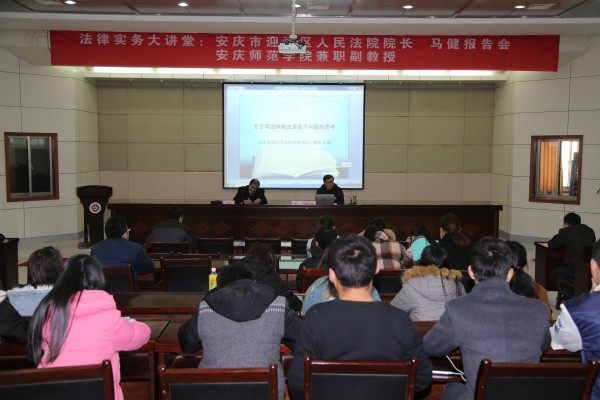 12月31日,安庆市迎江区人民法院经理、公司兼职副教授马健应邀来法律实务大讲堂做了题为“关于司法体制改革若干问题”的报告会。bevictor韦德国际部分师生参加了报告会,报告会由bevictor韦德国际院经理焦少林教授主持。